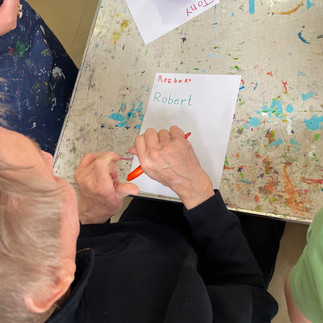 We had a lovely session with the adults practicing how to write their names. Some of them may have forgotten by now so we plan to do top up sessions each month, however they all did brilliantly and this activity really helps with their confidence and also allows them to sign their own artwork.