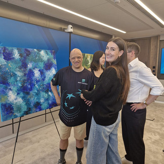 We have a wonderful relationship with Proskauer, who commissioned the Rainbow Club to paint three large canvases for their office. We delivered them, and a couple of weeks later were invited back for an amazing reception to celebrate the works and talk about them with the team there.