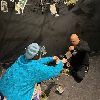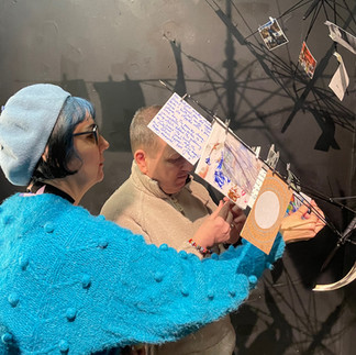 To finish off the month, we were invitied to a special exhibtion held by South London Women Artist's at the Espacio Gallery down the road. They invited us in for a prviate viewing before encouraging the whole gang to get stuck in to a creative workship in the gallery space. Nazim especially enjoyed looking at the artwork, asking questions and hanging the postcards on the umbrellas.