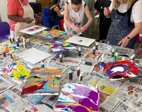 We had an abundance of volunteers for a full day, from British Land. They came along with supplies for a super fun art activity (paint pouring, and other rainbow paintings!) as well as a delicious lunch for everyone. They also spent the day organising and cleaning the art centre for us, which was an incredible help. After that, we all took the adult group out for some dinner and drinks (mocktails!) which was a great way to round off the day.